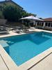 The ground floor apartment accommodates up to five people. The living/dining room is furnished with a sofa, two armchairs, a coffee table and a 32" television with a DVD player and grants access to the patio. The separate kitchen unit is furnished with a stove, an oven, a refrigerator/freezer, a microwave, a toaster and a coffee maker, a kettle and a washing machine. There is also an additional dining table with chairs. The two bedrooms are furnished with a large double or two single beds, a pull out bed and wardrobes. The bathroom was renovated in 2014 and offers a shower, a bathtub, a sink and a toilet. The apartment has gas central heating.